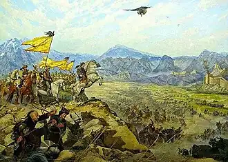 Chinese sources list the Xiongnu host at 400,000 and the Han army at around 320,000, although it is uncertain how much of the vanguard was trapped in the fort with the emperor before the main host arrived to relieve them.[3] It was reckoned as a Xiongnu victory, although the nomads supposedly suffered heavier casualties than the Chinese army.[3]