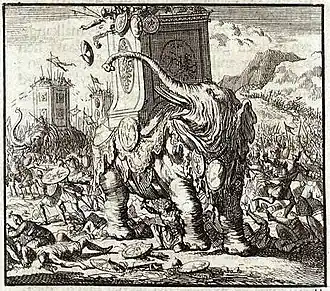 ![]() 1698 illustration of Eleazar fighting an elephant at the battle by Jan Luyken | |||||||