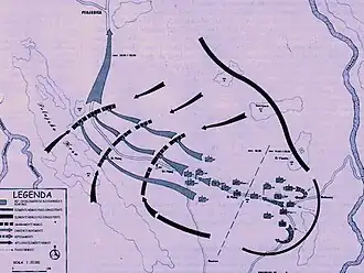 ![]() The Charge of Poloj (in Slunj), Croatia, scheme of the flanking maneuver of the Italian cavalry, 1942 | |||||||