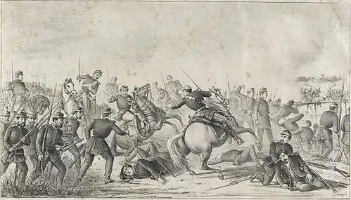 The battle started by late morning and was characterized by attacks and counterattacks for control of the bridge. By nightfall, after a fierce fight, the bridge was taken by Brazilian volunteer battalions led personally by marshal Caxias shouting "Follow me, those of you who are Brazilians", and the Allies could advance towards Villeta.[1]: 92