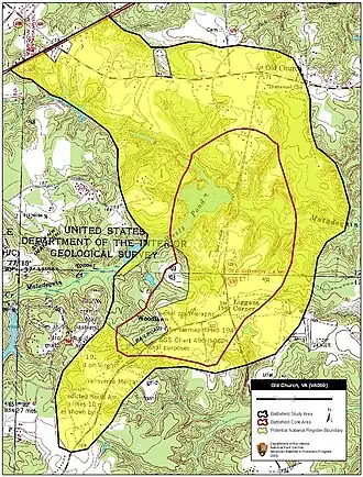 - ^ a b c Union casualties are from Kennedy, p. 291, who cites 90 Union, Confederate unknown. Confederate casualties are from Rhea, p. 139: 4th Carolina 52, 5th South Carolina 16, 7th South Carolina 82, 20th Georgia Battalion 38. Salmon, p. 292, cites 90 total casualties for both sides. The "NPS battle summary- Old Church". Archived from the original on 2005-04-09. (which provided the bases of both Salmon's and Kennedy's works) cites 900 total.