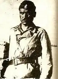 The commanders at Porta, as well as of the overall force, were Cavalry Captain Georgios Zarogiannis (nom de guerre "Kavallaris", 'horseman'), a veteran of the Greco-Italian War and head of the Kissavos sub-command, and Dimitris Tasos, better known by his alias of "Mimis Boukouvalas".[19] During the course of the battle, a former General Staff colonel, Dimitrios Petroulakis, served in an advisory capacity; after the battle, despite being a committed royalist, he joined the ELAS General Headquarters as chief of staff.[20][21] According to Boukouvalas' memoirs, given the small force at their disposal, the Thessaly Headquarters initially insisted that they only harass the Italians, but he and Zarogiannis insisted on standing and fighting at Porta as long as possible. To that end, a fortnight before the battle they began preparing extensive fieldworks covering a front of some 4 kilometres (2.5 mi), running from north of Dousikos to Mouzaki. Telephone lines were laid to outposts in Dousikos, Mouzaki, and to Tyrna and Pertouli to their rear. Advanced detachments and horse patrols were sent out to gather supplies and reconnoitre the plain as close to Trikala as possible, and a telephone line was laid to the villages of Mikri Pouliana and Beletsi to warn of the approach of Italian forces.[22] Headquarters reluctantly conceded them freedom of action, and Boukouvalas and Zarogiannis continued preparing their defences in the area. Since no timely reinforcements could be expected, the plan was to delay the Italian advance for as long as possible. The forces covering the Mouzaki area were instructed, if pressed hard, to begin an orderly retreat by pivoting towards the right, while keeping their left anchored to maintain contact with the Porta position.[23]