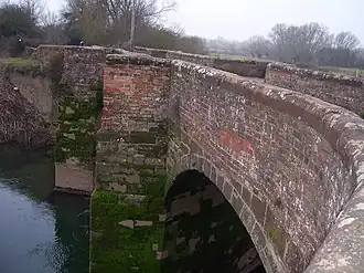 The Parliamentarians attempted to regroup and return fire but were charged by Rupert's cavalry. Sandys was mortally wounded during the initial assault. Sandys's troops were routed with no support from their dragoons, which were stuck behind the cavalry in the narrow country lanes.[28][30] Fiennes said that he managed to control his cavalry and hold fire until the charging Royalists were close enough "so that their horses' noses almost touched those of our first rank".[16] Despite this, they were isolated after the retreat of Sandys's men and forced to abandon the fight.[16] The Parliamentarian dragoons made a rearguard stand on Powick Bridge to protect the cavalry's retreat, but Rupert called off the chase at Powick.[31]