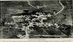 On 20 April at 4 a.m., German field artillery commenced a bombardment of the 102nd Infantry's positions near Seicheprey before German Sturmtruppen units of about 3,000 men moved against the village. The artillery box barrage, continuing 36 hours, isolated American units. The Germans, attacking from the north-western, north and north-eastern direction, overwhelmed a machine gun company and two infantry companies of the 102nd and temporarily breached the trenches and forced Americans to leave their posts in the early morning. Between 400 and 500 American soldiers were wounded or killed.[4]