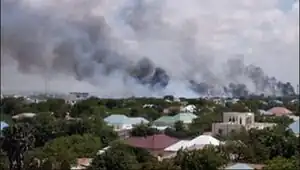 Early 2007 saw Somalis rally behind what was referred to as the muqawama (resistance) or kacdoon (uprising).[24] On 19 January, insurgents in Mogadishu launched an assault on the ENDF/TFG held Villa Somalia. The ICU claimed responsibility for the attack, declaring it as part of a "new uprising".[25][26] The following day an ENDF convoy in the city came under ambush. Residents reported that the Ethiopian troops had responded by firing into crowds indiscriminately.[25][27] Mogadishu was divided into two segments, one controlled by the ENDF/TFG and the other by emerging resistance movements.[28]