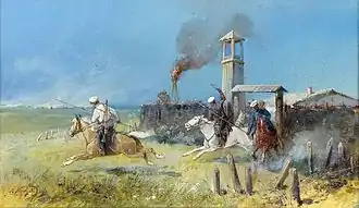 On this day, the Kokand people, without waiting for a full gathering of forces, directly attacked the Russians, but the grapeshot artillery fire inflicted heavy losses on them and they were forced to retreat.[3]