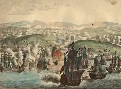 The Battle of Vyborg Bay (or the Battle of Vyborg)[e] was a naval battle fought between Russia and Sweden on 3 July 1790 in Vyborg Bay off the coast of Vyborg during the Russo-Swedish War (1788–1790). The Swedish Navy suffered heavy losses, losing seven ships of the line and three frigates, but Gustav III of Sweden eventually ensured a Swedish naval escape through a Russian naval blockade composed of units of the Baltic Fleet, commanded by Admiral Vasily Chichagov.[12] British historians would later call the Battle of Vyborg Bay the "Baltic Trafalgar".[2] The battle ranks among the world's largest historical naval battles and also among the most influential, as it introduced the naval battle concept of "firepower over mobility".