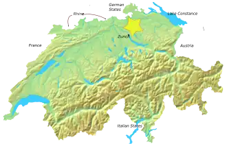 The Battle of Winterthur (27 May 1799) was an important action between elements of the Army of the Danube and elements of the Habsburg army, commanded by Friedrich Freiherr von Hotze, during the War of the Second Coalition, part of the French Revolutionary Wars. The small town of Winterthur lies 18 kilometers (11 mi) northeast of Zürich, in Switzerland. Because of its position at the junction of seven roads, the army that held the town controlled access to most of Switzerland and points crossing the Rhine into southern Germany. Although the forces involved were small, the ability of the Austrians to sustain their 11-hour assault on the French line resulted in the consolidation of three Austrian forces on the plateau north of Zürich, leading to the French defeat a few days later.