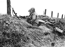 In the afternoon the two battle groups that constituted the 10th SS Panzer Division, the 21st and 22nd SS Panzer Grenadier Regiments, launched an attack against the British right flank at Bemmel from the area of Baal all the way to Haalderen. The latter on Bemmel was supported by tanks which struck the positions of the 6th Highland Light Infantry, which had taken over from the 5th East Yorkshires the previous day and experienced its first day in the frontline. The attack was repelled by 1620 hours having petered out due to heavy British defensive artillery fire and boggy ground which was unsuitable for the tanks.[26]