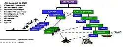 The 1980s witnessed the development of AirLand Battle Doctrine, which relied heavily on US Air Force capabilities to shape the attack of numerous echelons of Soviet Forces in Europe where US Army Artillery could not reach or provide an accurate means of attack. General Wilbur L. Creech, USAF, assisted in the Airland Battle doctrinal development and saw it as a means to prevent the US Air Force from losing tactical mission aircraft to the US Army.[2] The paradigm shift away from the US Air Force from only supporting CAS missions for the Army to meet the operations needs required close coordination between the components at the operational level. A provisional organization called a Battlefield Coordination Element (BCE) was established and in 1984 a Memorandum of Agreement between the two branches of service continued to codify the support requirements needed to unify efforts.[3]