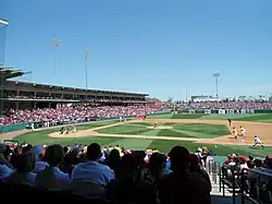 Baum–Walker Stadium at George Cole Field is the home venue of the Arkansas Razorbacks baseball team of the NCAA Division I Southeastern Conference, located in Fayetteville, Arkansas, United States.[2] The playing field itself is named George Cole Field, in honor of the former Arkansas athletic director. George Cole Field was also the name of the Razorbacks' old home stadium, in use from 1975 to March 1996. Baum Stadium replaced George Cole Field in April 1996. The stadium is located one-half mile from the main Arkansas campus, which lies across Razorback Road from the stadium. On January 31, 2019 the stadium was renamed Baum–Walker Stadium at George Cole Field in recognition of longtime support from the Walker Family and the Willard and Pat Walker Charitable Foundation.[3]