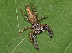 Bavia species are around 6 to 11 millimetres (0.24 to 0.43 in) long in both sexes. Species of this genus are slender with long legs.[2]