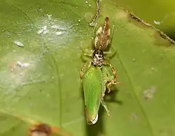 2. ^ Sebastian, P. A.; Peter, K. V. (2009). Spiders of India. Hyderabad: Universities Press. pp. 284–285. ISBN 978-8173716416.