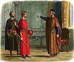 Control of the parish was passed down through the Earldom of Norfolk until Roger Bigod, 5th Earl of Norfolk died childless and his lands were escheated to the crown in 1306, eventually passing to King Edward I's fifth son Thomas. Prominent families from this period include the de Weylands, who were recorded as being "of Baylham" as early as 1200, and the de Bournevilles, with a William de Burnaville holding the manor in the 13th century.[11][12] A little later the de Cleydons became influential, with John de Cleydon (d. 1333) holding rents in the area.[13]