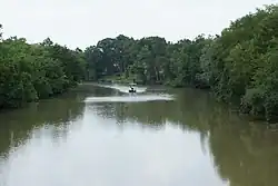 The Vermilion River, or the Bayou Vermilion (French: Rivière Vermillon), is a 70.0-mile-long (112.7 km)[2] bayou in southern Louisiana in the United States. It is formed on the common boundary of Lafayette and St. Martin Parishes by a confluence of small bayous flowing from St. Landry Parish, and flows generally southward through Lafayette and Vermilion Parishes, past the cities of Lafayette and Abbeville. At the port of Intracoastal City, the Gulf Intracoastal Waterway crosses the river before the latter flows into Vermilion Bay, an inlet of the Gulf of Mexico. The river originates at Bayou Fusilier, which is fed by Bayou Teche; winds its way through Lafayette Parish; and drains into the Vermilion Bay below Vermilion Parish.