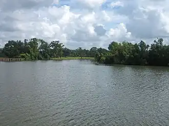 The importance of the Vermilion as a means of transportation and commerce declined with the introduction of the railroad and the paving in 1936 of all highways leading into Lafayette.[4] The Army Corps of Engineers also had a significant impact on Bayou Vermilion. Their dredging, completed in 1944, gave the bayou a depth of 9 feet (3 m) and a bottom width of 100 feet (30 m). Water from the Vermilion River is used primarily for rice irrigation and for the dilution of municipal and industrial chemicals and sewage.[5]
