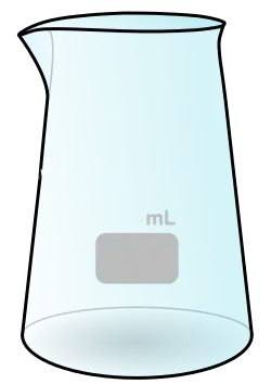 In laboratory equipment, a beaker is generally a cylindrical container with a flat bottom.[1] Most also have a small spout (or "beak") to aid pouring, as shown in the picture. Beakers are available in a wide range of sizes, from one milliliter up to several liters. A beaker is distinguished from a flask by having straight rather than sloping sides.[2] The exception to this definition is a slightly conical-sided beaker called a Philips beaker. The beaker shape in general drinkware is similar.