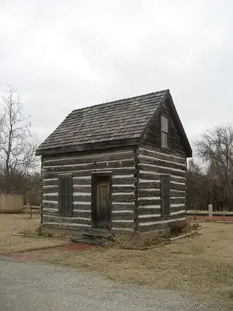 In 1999, the cabin was restored and moved to its present location, near the Santa Fe Depot on Main Street, after being damaged in a windstorm at Woodland Park in Shawnee. The Cleo Craig Foundation provided the funds for the relocation.