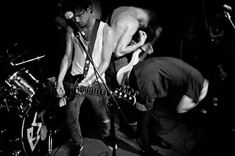 The twin-bass setup is fairly unusual to the South African music scene. Zietsman plays in lower key as the rhythm, akin to a normal bassist. Nel employs a higher chord-based approach as the lead, akin to a lead guitar. The perform with a bass and normal guitar amp to create a "rawer, harder, and more low-fi sound".[25]