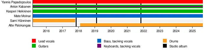 - Atte Palokangas – drums (2018–present)
