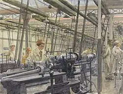 In February 1919, she approached the Women's Work Committee of the Imperial War Museum with an offer to record the activities of the QMAAC members remaining in France before their units were disbanded and they returned home.[6] The Committee agreed to her proposal and Lithiby spent a further six months in France recording, in sketches and watercolour paintings, the work of the QMAAC at camps in Dieppe, Rouen, Le Havre and Abbeville where the Corps' members were tending cemeteries, clearing former battlefields and performing other industrial and administrative roles.[6] Although Lithiby had initially agreed a greatly reduced fee with the Committee, three months into her commission the Committee wrote to her to say that due to budget cuts they would be unable to pay her at all.[6] Lithiby continued with the work and in due course donated twenty watercolours to the Imperial War Museum which form a rare artistic record of the work of women in military service at the time.[6]