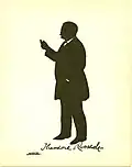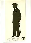 Sherman often compared herself to August Edouart, a well-known 19th century French silhouette artist who kept books with an extra copy of each sitter's silhouette. This not only allowed Edouart to keep a visual record of his work, but also allowed him to cut copies of silhouettes for sale at a later date.[6] Beatrix Sherman emulated August Edouart by numbering or making a notation on the back of each of her silhouettes, enabling her to create an extensive personal archive that included both silhouettes and her sitter's autographs. Often she would write comments on the verso of the silhouette noting both the location and anything else of interest about the sitter or the process of cutting the silhouette. Sherman's use of scissors in lieu of a camera created a collection that documented society in both an old fashioned and personal way. She even began to experiment with larger silhouettes, and in Fall of 1925, Beatrix Sherman advertised in The New Yorker, offering to cut not only single but also family silhouettes to be made into Christmas cards.