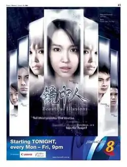 Beautiful Illusions (镜中人) is a Singaporean TV series which aired in 2005. It stars Fann Wong in two diverse roles - a quiet and undistinguished cartoon illustrator with a quirky sense of style (Yixin), and a fashionable, vampy air stewardess who lives the high life on her motorbike (Joe Ann). The series title literally means "person in the mirror" and alludes to the main character.