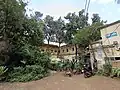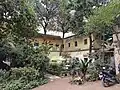 It is a two-storied building with an open central courtyard. There are long verandas in front of the boarding rooms.