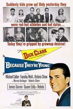 Because They're Young is a 1960 American drama film directed by Paul Wendkos and starring Dick Clark as Neil Hendry, an American high-school teacher who tries to make a difference in the lives of his students. The film co-stars Tuesday Weld, Michael Callan, Warren Berlinger, Roberta Shore, Doug McClure, Victoria Shaw, and Stephen Talbot. The screenplay was based on Harrison High, a 1959 novel by John Farris.