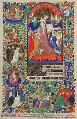The Bedford Master was a manuscript illuminator active in Paris during the fifteenth century. He is named for the work he did on two books illustrated for John of Lancaster, 1st Duke of Bedford between 1415 and 1435. One is the Bedford Hours, a book of hours in the British Library (Add. MS 18850);[1] the other, the Salisbury Breviary, is in the Bibliothèque nationale de France (MS lat. 17294).[2] Another manuscript is in the Royal Collection.[3] The Bedford Master is known to have been the head of a workshop; his chief assistant is known as the Chief Associate of the Bedford Master.