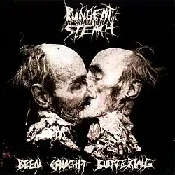 Been Caught Buttering is the second album of the Austrian death metal band Pungent Stench. It was originally released in 1991 on Nuclear Blast. The original album art, which depicted two severed, partially decomposed heads kissing (in fact, it is one head which had been sawed in half by Joel-Peter Witkin), had to be changed for the Australian release. The cover art can also be seen as a parody of a famous picture with Leonid Brezhnev and Erich Honecker kissing at the celebrations of the 30th birthday of the former German Democratic Republic in 1979.