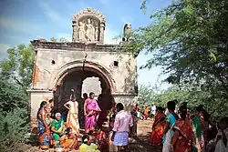 The new temple was established in the center of the village, although Poleramma is a coast goddess whose temples are usually established at the outskirts of villages.[1] This is also observed in various other places in Andhra Pradesh including Allur.