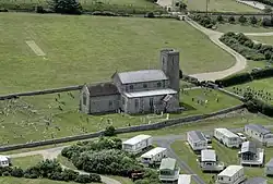 Other features of the village are the cliff-top Parish Church of All Saints (which is a Grade I[12] listed Church and is located in Church Close), dating from the latter part of the 11th century or early in the 12th.[8] The tower arch opening into the nave is 13th century, as are much of the chancel and nave walls. Probably towards the end of the 13th century or early 14th century the church was reconstructed. The existing arcades were inserted into the nave walls onto the aisles, which were constructed at this time, and the nave walls raised to provide for the clerestory, the window arches of which are decorated on the outside with squared flints. The inventory of 1552 makes it clear that there were three bells in the tower, a fourth being added in 1610. The latter is the only one remaining, the others being sold to defray the cost of repairs in 1765.