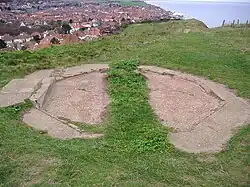 The concrete remains of part of this facility can still be seen on the summit of the hill: the octagonal concrete base measures 3.85 m (13 feet) across, with a channel running west to east across the middle. On the southern edge of the octagon is a raised area of concrete, which is 225 mm (9 inches) higher than the rest of the base. Around the edge of the octagon are the remnants of a reinforced parapet, which has long been removed. There are also signs of a Fletton brick wall running westward away from the raised area. The octagonal shape of the base indicates that a direction-finding station operator's hut stood there. It would have consisted of a double-skinned wooden structure in which the cavity was filled with shingle designed to make them "splinter proof" or "bulletproof". Two Y stations were operated in Sheringham in World War II, one by the RAF and the other by the Royal Navy.