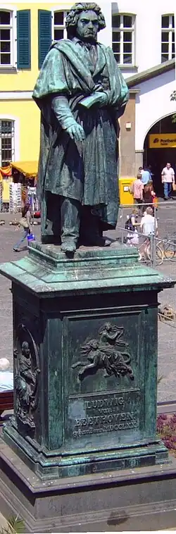 The Beethoven Monument is a large bronze statue of Ludwig van Beethoven that stands on the Münsterplatz in Bonn, Beethoven's birthplace. It was unveiled on 12 August 1845,[1] in honour of the 75th anniversary of the composer's birth.[2]