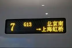| Train number(s) | G1-18, G21/22, G101-160, G169/170, G411/412 (odd number for Shanghai-bound trains while even number for Beijing-bound trains) |