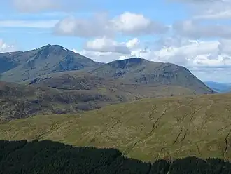 ![]() Beinn Chùirn (centre) with the higher Ben Lui (left) seen from the high ground to the NE | |