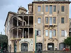 During the early years of the war, Beirut was divided into East and West, with the Barakat Building located along the infamous Green Line that separated the Christian-dominated East Beirut from the Muslim-dominated West Beirut. The building, originally a family residence and later a defensive position for Christian militias, became symbolic of the wartime divide. Overlooking the Sodeco crossroad, it became notorious as a sniper's nest, contributing to its nickname, the "Yellow House." The building was abandoned by its residents and quickly became a critical position for snipers and militias due to its strategic location of the Damascus Road, the de facto demarcation of the Green Line dividing the Christian East and Muslim West sides of the city of Beirut. The Lebanese Civil War, which began in 1975, saw the rise of various militias, including Maronite Catholic and Shiite groups like Hizbollah. The conflict intensified with Israel's 1982 invasion, leading to further devastation and the infamous Sabra and Shatila massacre. The Barakat Building's façade and interior bore the scars of war, with bullet holes and other damage becoming physical reminders of the conflict.[3][5][6]