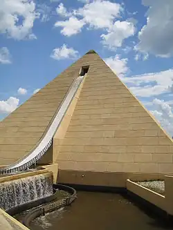The water ride Fluch des Pharao starts from a pyramid with a height of 38 m.[5]