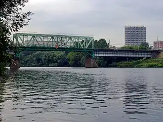 The Belarusian railway bridge (Russian: Филевский) in Moscow is a three-span steel girder bridge over the Moscow River, located on the Belarusian suburban direction of Moscow Railway. It is the outcome of a structure built in 1895, which was renovated twice – in 1938 and 1961.