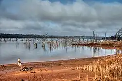 The lake was constructed on Bell Cow Creek for flood control, water supply, recreation, and fish and wildlife purposes. The lake surface covers 1,153 acres (4,670,000 m2). Four recreational areas cover another 1,000 square feet (93 m2), offering boating, fishing, swimming, camping, picnicking, and horseback riding.[2] Its overall dimensions are 3.5 miles (5.6 km) wide by 1 mile (1.6 km) long, and it opened officially in January, 1994.[3]
