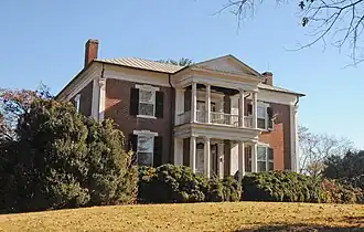 Belle Aire is a Greek Revival mansion listed on both the National Register of Historic Places and the Virginia Landmarks Register in the Greater Deyerle neighborhood of the independent city of Roanoke, Virginia, U.S.A. Located just south of Brandon Avenue SW (U.S. 11) at 3820 Belle Aire Circle SW, Belle Aire was completed in 1849, as the private residence of Madison and Margeret Pitzer on a knoll overlooking their 1,600 acres (2.500 sq mi; 6.475 km2) of land adjacent to the Roanoke River.[3] It is located approximately one-half mile from his brother Jeramiah's house (Mount Airy). Today the home still stands, with the surrounding area now developed as single family home typical of those built during the 1970s-80s.[3]
