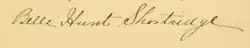 Belle Hunt Shortridge (née, Hunt; 1858 – November 24, 1893) was an American writer of poetry, novels, short stories, and juvenile literature. She was the first person of European descent to be born in Wise County, Texas. She was a versatile and prolific writer, when the brief time allotted to her is considered.[1] She published a volume of poems entitled Lone Star Lights (1890), two novels, Held in Trust (1892) and Circumstance (1893), and numerous short stories and sketches.[2] Shortridge died in 1893.