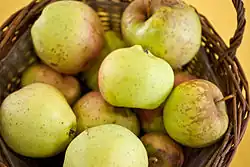 Yellow Bellflower is a cultivar of domesticated apple that originated in New Jersey.[1][2] It has many other names including "Belle Flavoise" and "Lincoln Pippin".[1] It is probably the best known of a group of apple cultivars referred to as the yellow bellflower group, with fruit that are generally elongated, with largely yellow skin.[1] Along with the Yellow Bellflower, the Ortley is the oldest of the group.[1]