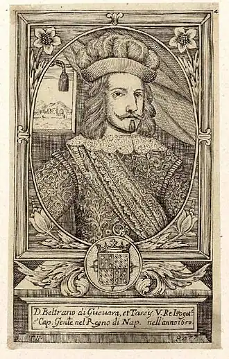 However, his most notable intervention in the service of the monarchy came in 1650, when it was decided in Madrid that he should replace his brother Íñigo as Viceroy of Naples, while the former was away on a military campaign in Tuscany, which was threatened by the French. He was interim Viceroy of Naples from April to September 1650.[3]