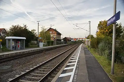 Bempflingen station is located in Bempflingen in the German state of Baden-Württemberg at line kilometre 22.2 of the Plochingen–Immendingen railway. According to the German railway regulations, it should be downgraded from a station to the status of a Haltepunkt (roughly: "halt").