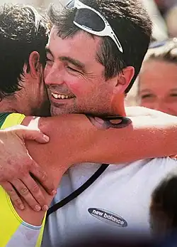 Gathercole followed in his father’s footsteps to become an Olympic and Commonwealth Games coach after his athlete Simon Thompson[20] qualified for the Australian team for the 2004 Athens Olympics (placing 10th after falling twice on the cycle leg) and the 2006 Melbourne Commonwealth Games, where he finished 11th having agreed to play a team role for Australia to support the eventual Gold and Bronze Medal winners Brad Kahlefeldt and Peter Robertson.[21] Gathercole's stable of athletes over more than two decades has also included Michelle Dillon (who raced for Great Britain in the Sydney 2000 Olympics and Athens 2004 Olympics),[16] Michelle Wu (Australia)[22] World Champion in 2008 and Oceania Duathlon Champion in 2007, Kat Baker (Australia) World Champion in 2005 and 2006,[23] World Champion (2015, 2016) and 2018 Commonwealth Games silver medallist Bec Wiasak (Australia),[24] five-time Australian Capital Territory Triathlete of the Year (1996-2001) Raeleigh Tennant,[25] two-time ACT Triathlete of the Year (1993, 1995) Alison Coote,[25] and American professional endurance athlete, motivational speaker and adventurer Colin O'Brady.[26]