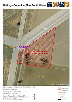 - ^ a b c d e f g h i j k l m n o p q "The Ben Hall Sites - Ben Hall's Death Site". New South Wales State Heritage Register. Department of Planning & Environment. H01827. Retrieved 2 June 2018.
