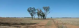 Ben Hall's Death Site is located between Forbes and Bogan Gate, approximately 19 kilometres northwest of Forbes. The site itself was marked by the Forbes Historical Society in 1957 with a metal plaque on a steel post. The site is a group of small trees on an otherwise treeless plain. The site is accessible by a small gate from Ben Hall's road and is adjacent to a dam. Billabong Creek, where Mick Coneley had his hut, is located to the north west of the site. The actual location of where the events of Hall's death took place has been ascertained using the notes and map of Inspector Davison which were reproduced in Peter Bradley's book "The Judas Covenant".[1]