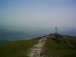 A short distance down to the south-east of the summit trig point, an iron cross commemorates Sergeant Harry Lawrie of the Killin Scottish Mountain Rescue team, who died on 1 February 1987 during a rescue operation on Ben More near Crianlarich when the helicopter crashed.[2]